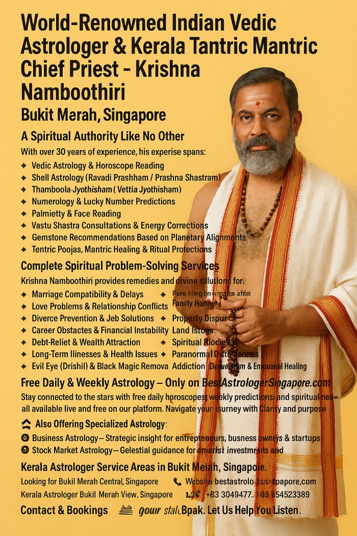 Heeding the call of ancient wisdom in a modern world, Krishna Namboothiri, a globally respected Indian Vedic astrologer and Kerala tantric mantric chief priest, now offers his divine services in Bukit Merah, Singapore.