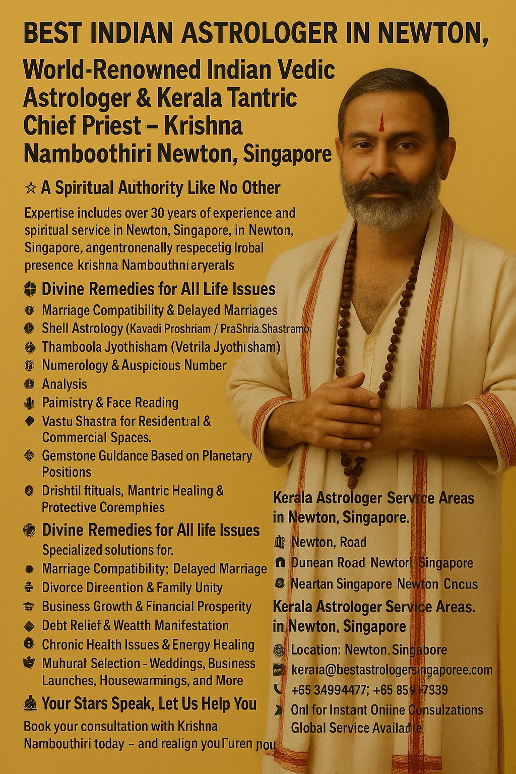 In the bustling and cosmopolitan area of Newton, Singapore, ancient Vedic astrology finds its home through the divine presence of Krishna Namboothiri — an internationally respected Indian astrologer and Kerala tantric mantric chief priest.