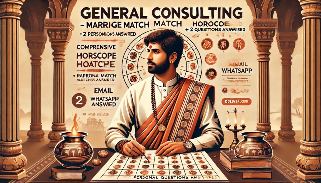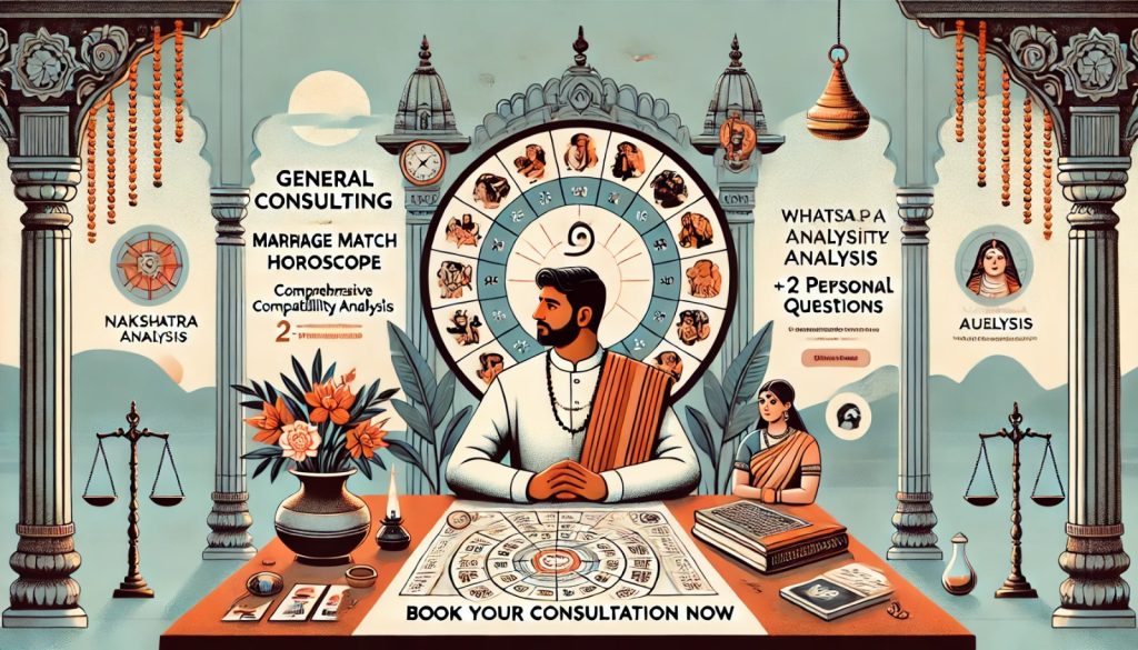 Get a detailed horoscope analysis for marriage compatibility from Kerala Priest K. Namboothiri and his expert team. This service provides an in-depth marriage match assessment along with answers to 2 personal questions related to the match or other concerns.